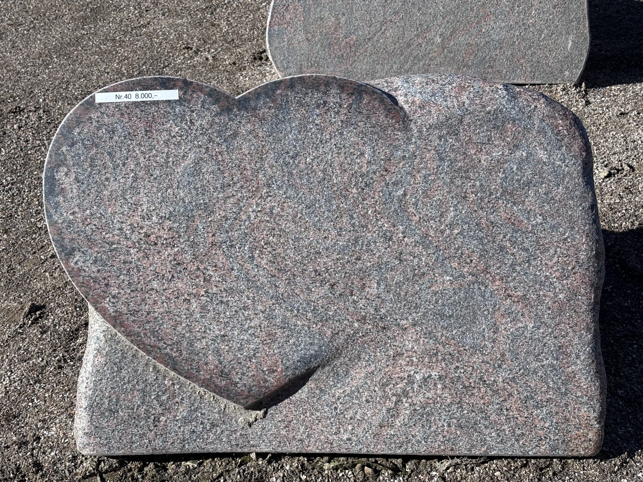 Gravsten udarbejdet af granit typen Halmstad, med et stort udskåret hjerte.